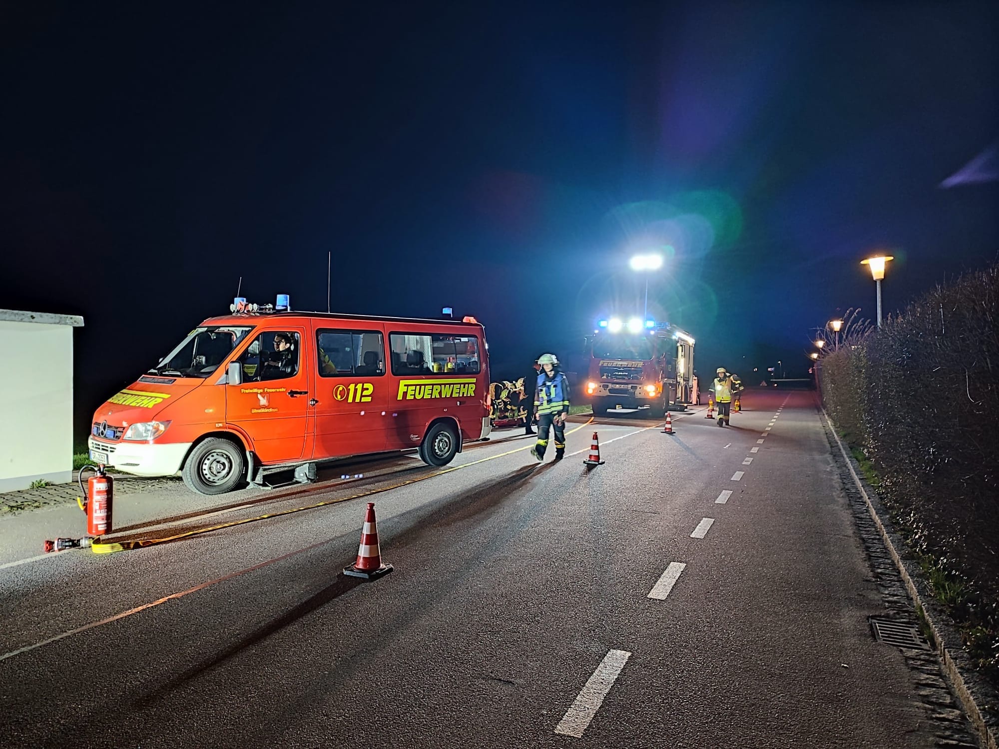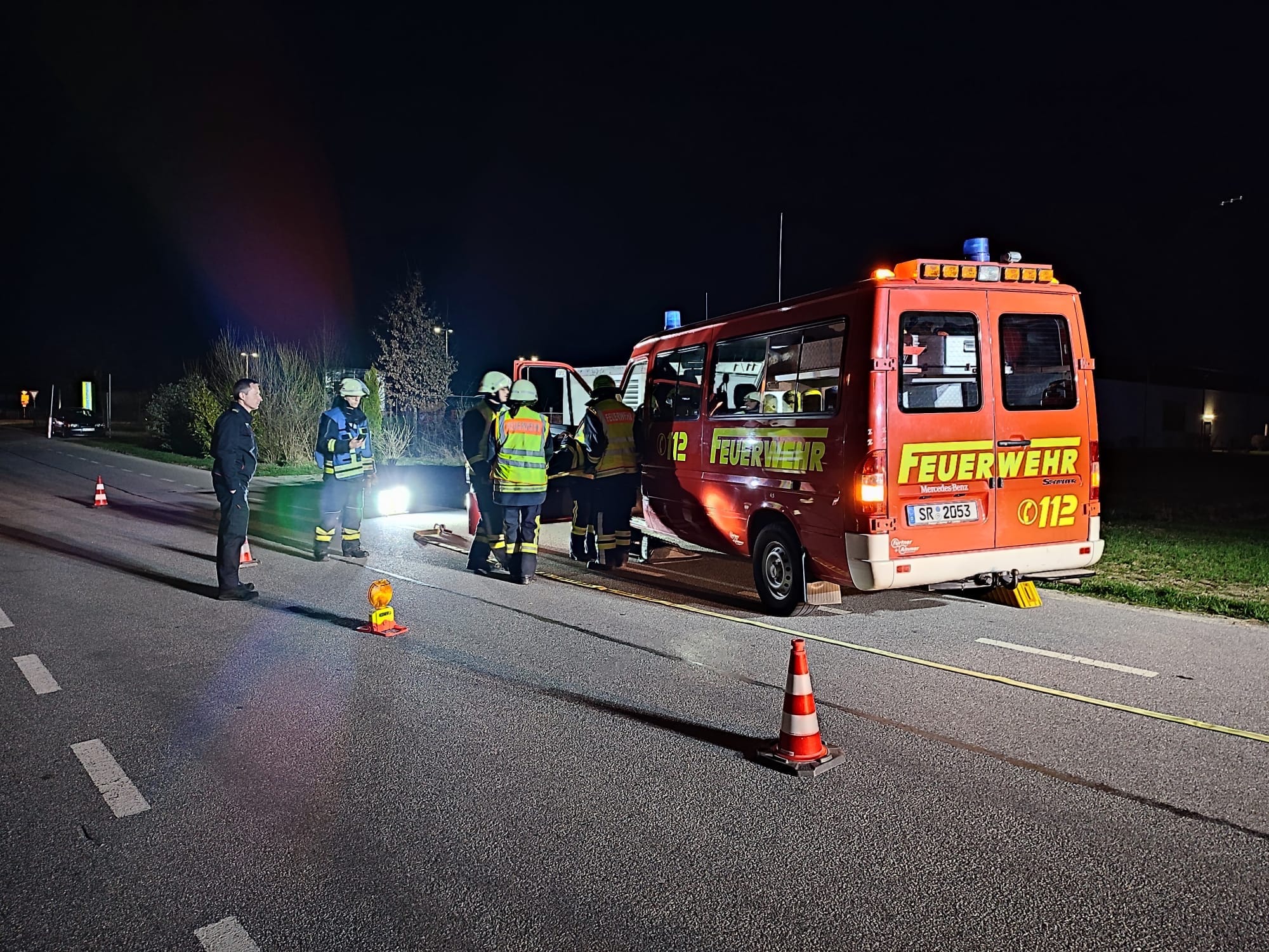 Im zweiten Szenario lag der Schwerpunkt auf Technischer Hilfeleistung. Ein Kleinbus war gegen ein Trafohäuschen geprallt und galt als möglicherweise unter Spannung stehend. Das Fahrzeug wurde durch den Angriffstrupp gegen Wegrollen gesichert und stabilisiert. Der Melder übernahm als innerer Retter die Erstversorgung der verletzten Person. Die Rettung erfolgte mit einem Spineboard. Parallel dazu sicherte der Wassertrupp die Einsatzstelle mit einem ABC-Pulverlöscher und Schnellangriff ab, während der Schlauchtrupp die halbseitige Verkehrsabsicherung übernahm. Dieses strukturierte Vorgehen verdeutlicht die Ausbildungsziele der MTA: klare Abläufe, sicheres Handeln und Teamarbeit unter realistischen Bedingungen. Nach den praktischen Übungen folgte die theoretische Prüfung. Aus einem Fragenkatalog mit rund 60 Fragen wurden 15 abgefragt. Inhalte wie Einsatzgrundsätze, Gerätekunde und Verhalten im Einsatz basierend auf den Ausbildungsunterlagen der Feuerwehr-Lernbar Bayern. Verantwortlich für die Ausbildung waren die Jugendwarte Lucas Götz und Simon Betz, unterstützt von Christoph Lankes, Christoph Altschäffl und Leon Schäfer. Bei der Abnahme wurde die Funktion des Gruppenführers durch den Jugendwart Lucas Götz besetzt, während Benedikt Kerl, 2. Kommandant der Feuerwehr, als Maschinist tätig war. Die Prüfung wurde von Kreisbrandmeister Thomas Abendhöfer sowie Schiedsrichter Markus Reiser begleitet und abgenommen. Nach zahlreichen Übungen und intensiver Vorbereitung konnten alle Teilnehmer die Prüfung erfolgreich bestehen. Damit ist die Feuerwehr-Grundausbildung abgeschlossen. Dabei hat die Freiwillige Feuerwehr Straßkirchen wieder eindrucksvoll bewiesen, dass sie fachlich sicher, eingespielt als Team und bestens vorbereitet für den Ernstfall ist.